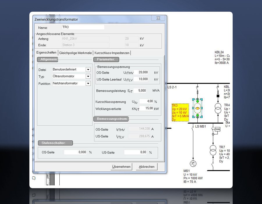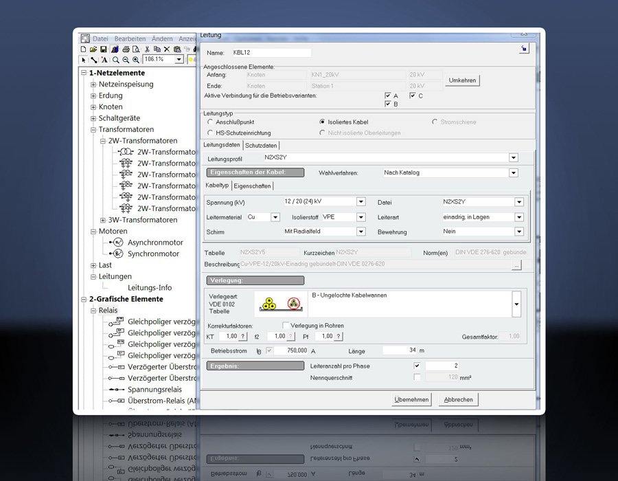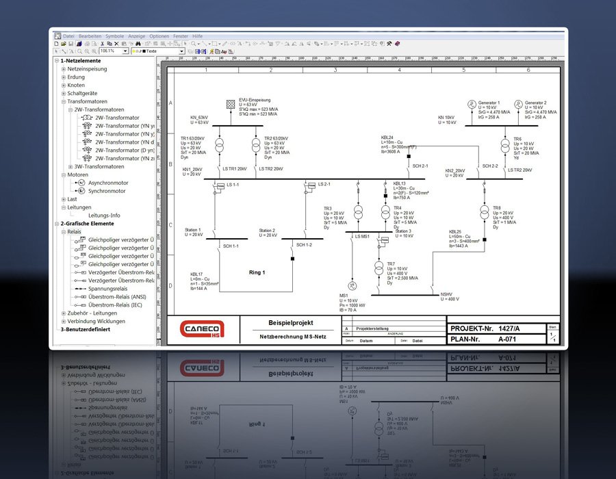 Caneco HT enables the planning and testing of medium and high-voltage systems for three-phase networks of 1000 V and up to 245 kV in accordance with the applicable IEC 60909, NF C 13-200 and IEC 61363 (Marine) standards. Caneco HT calculates the three-phase, common-pole short-circuit currents and enables the protective devices to be set and the cable cross-sections to be determined.
