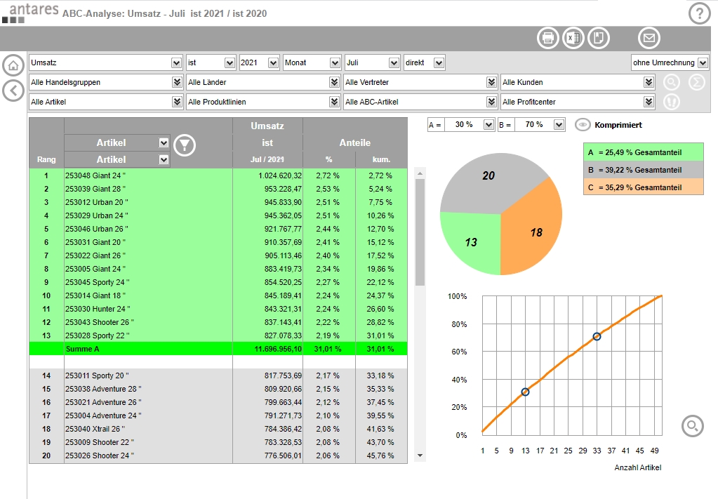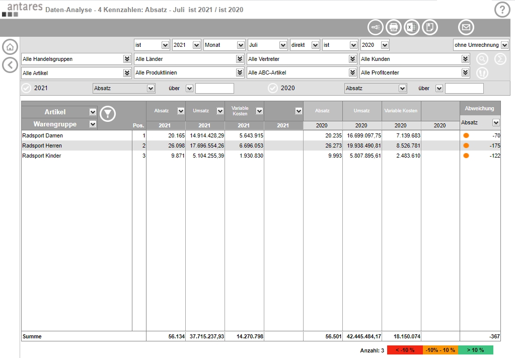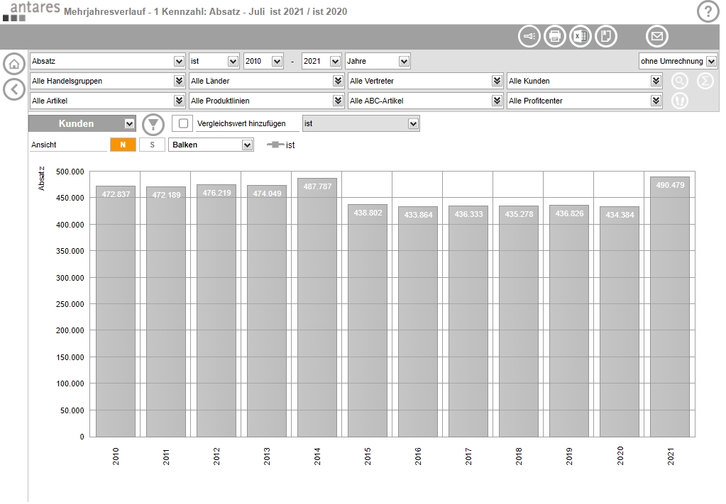 Don't rely on standard solutions to analyze your data! Our software for analysis and reporting, the Antares Analyzer, enables you to analyse and compare your data according to your individual requirements and visualize the results in clear reports.