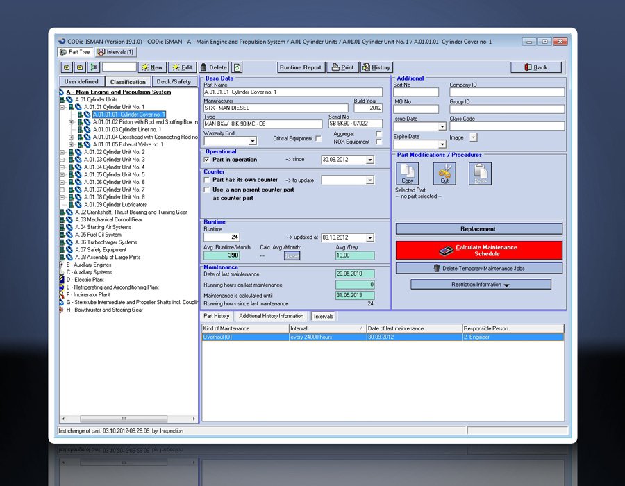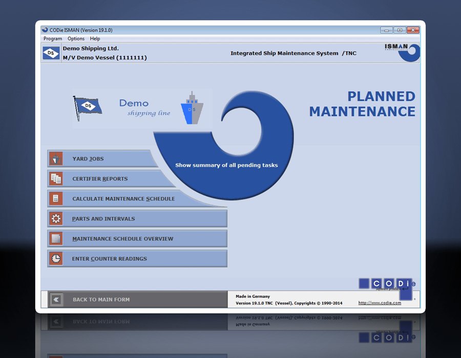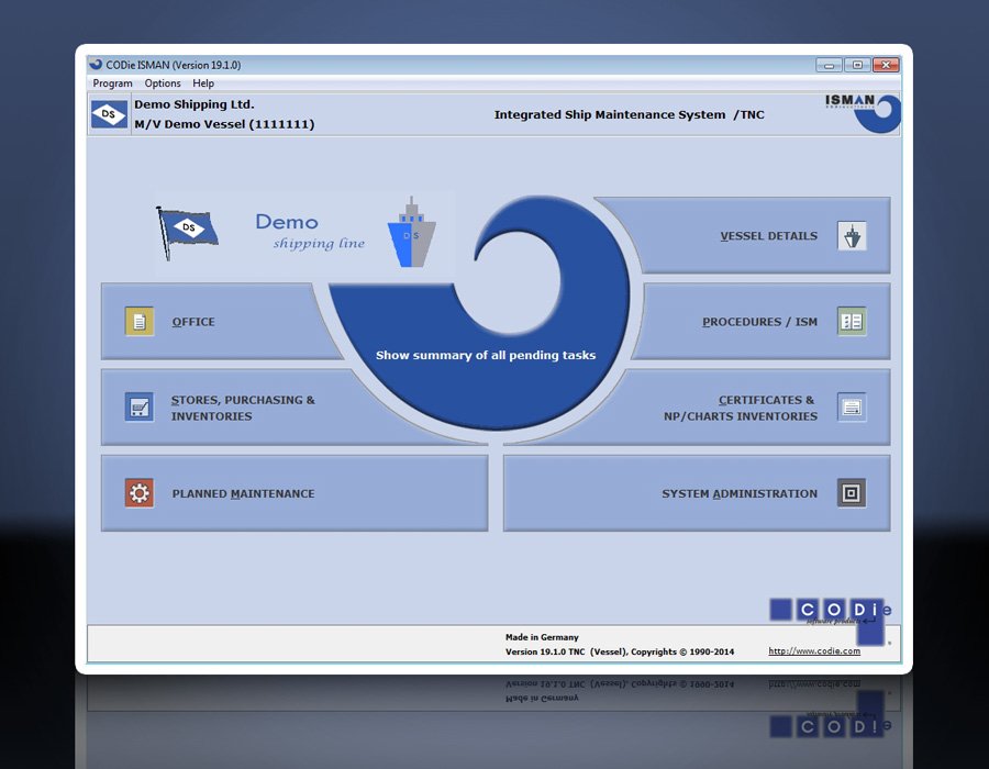 CODie ISMAN maintenance planning software is designed for easy ship management. Its main objective is to make the management of a ship on board and in the shipping company's offices easier and highly effective. The goal of this fleet management software is to keep costs and time (especially docking time in ports) as low as possible. Therefore, it has a dry dock planner, a procurement and spare parts inventory system, and an ISM management module.