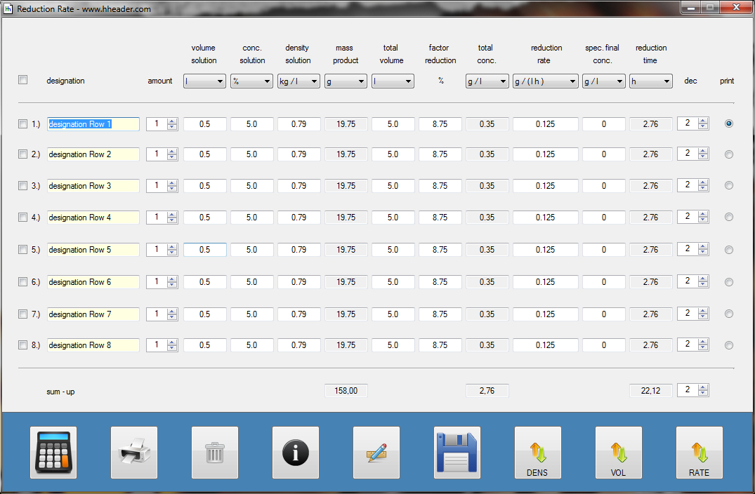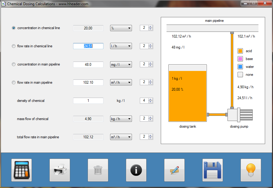 Used to calculate dosing rates and concentrations in the dosing and main lines.