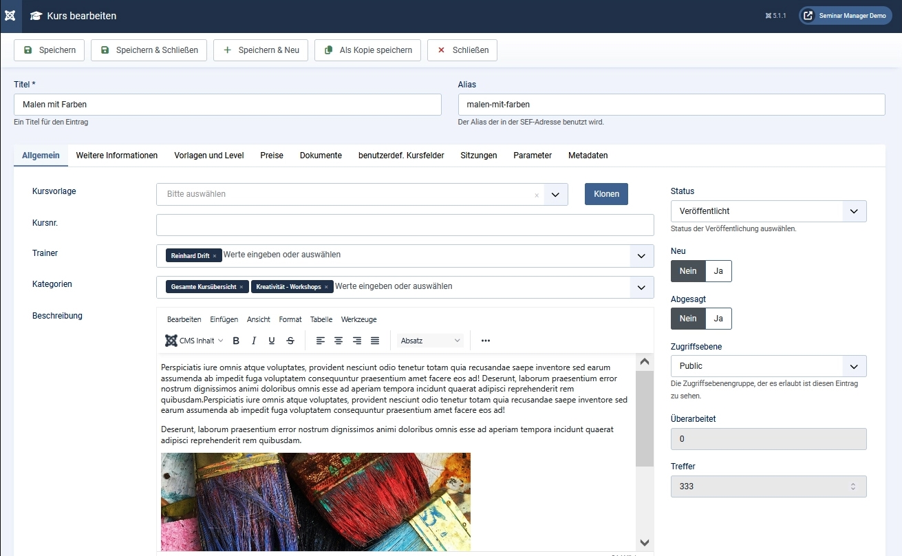 The OSG Seminar Manager impresses with its clear structure and intuitive operation - for both administrators and participants. Course information can be presented attractively, displayed in your organization's corporate design and easily maintained.