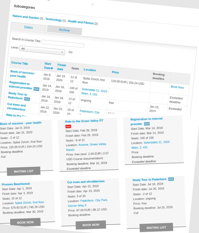 Thanks to its modular structure, seamless integration into Joomla 3, 4 and 5 and high level of customizability, the software is the ideal choice for educational institutions, clubs and academies as well as sports providers, music and language schools or organizers of vacation and leisure courses.