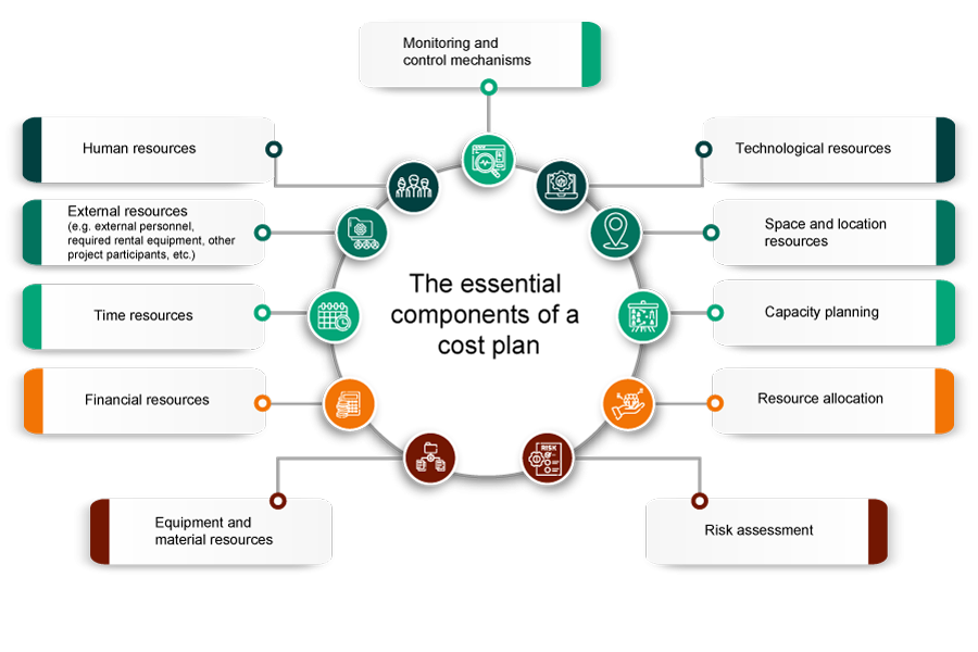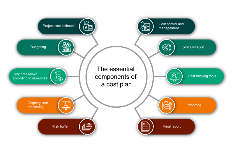 The main components of a cost plan are